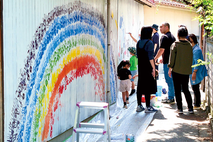 にじいろ商店inあきつが5月14日にリニューアルオープン クラファン支援者と外壁アート制作