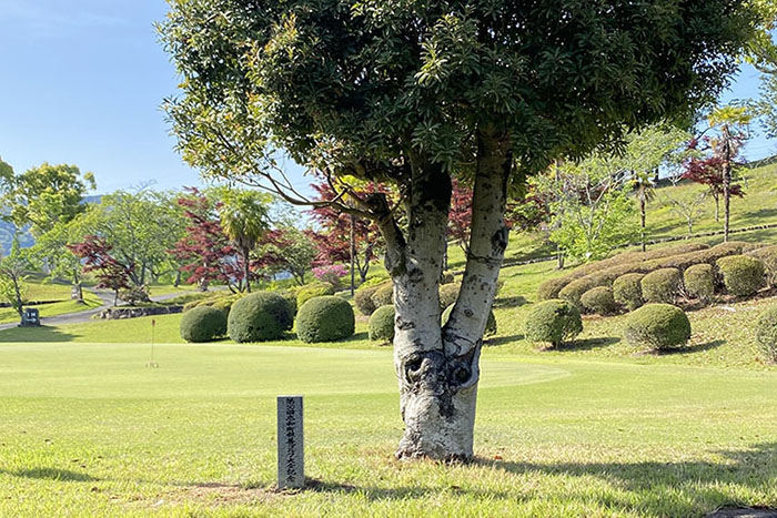 ゴルフ場には、第50回記念大会石碑を樹齢50年のヤマモモの木のそばに建立。実行委員の黒川さんは、「50回を迎え、これからも継続できるように、声を掛け合いながらゴルフを楽しみたい」と話しました。