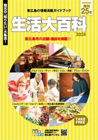 本紙を制作・発行している株式会社プレスネットが1999年から毎年春に発行、無料配布している東広島の情報満載のガイドブック「生活大百科」。皆さんのおかげで、今年で25周年を迎えます。時代とともに変わってきた生活大百科を振り返ります。