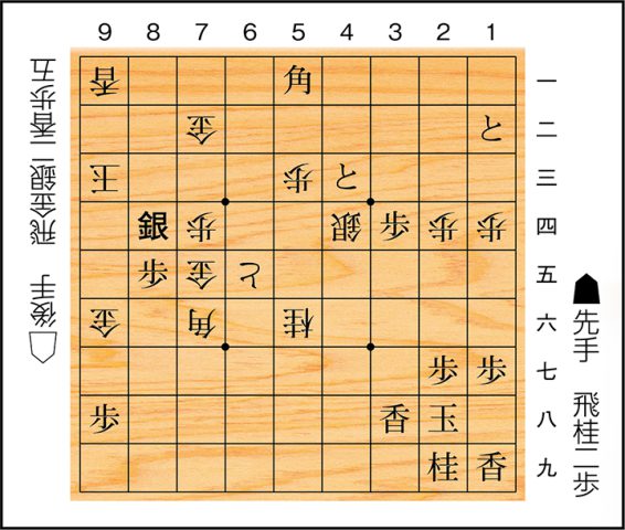 (2)☗8四角成は☖8二玉☗9四桂☖同香☗9三銀☖8一玉☗7五馬に☖3六桂以下詰まされる。
