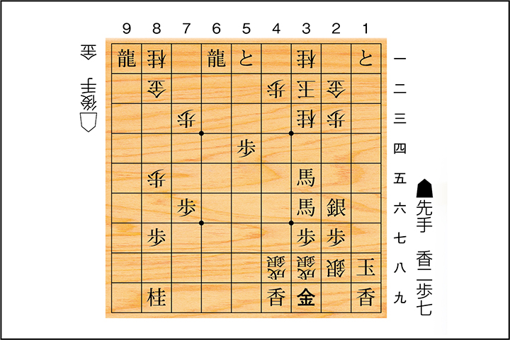(4)☖1七金は☗同銀☖3九銀不成☗4八香で先手勝勢。以下☖2八金とされても☗同銀☖同銀成☗1七玉で先手玉は詰まない。