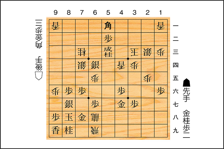 ②☗4五桂は☖同香☗5五角☖4四歩に詰みがなく敗勢。
