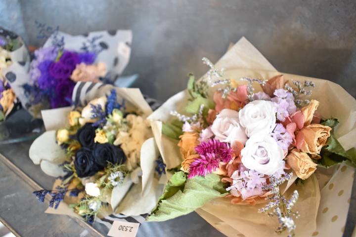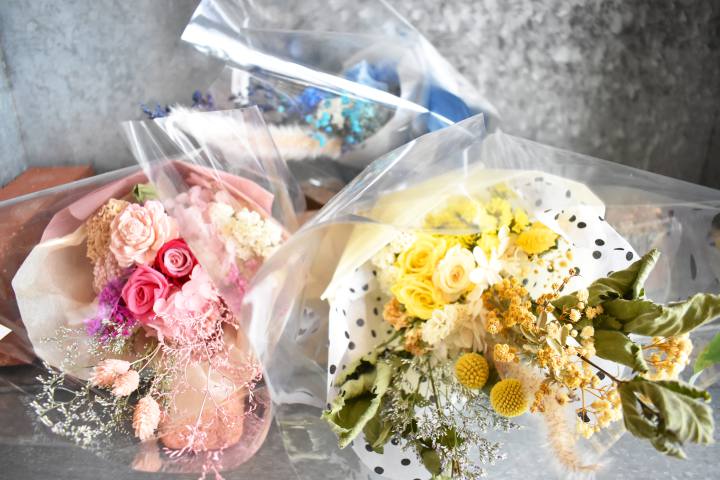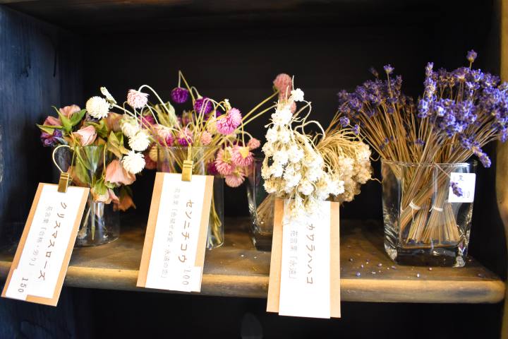 ドライフラワーは、発色がいいお花になるように作り上げているそう。