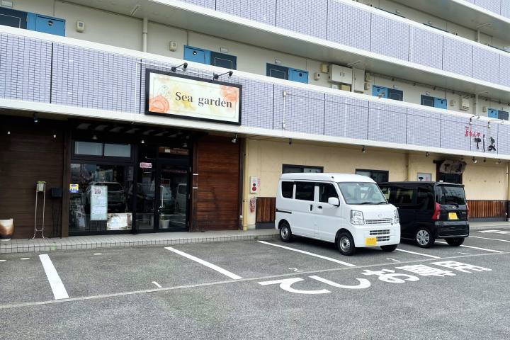 「てしお専用」の文字がありますが、隣の居酒屋が営業する前の17時までは、Sea gardenの専用駐車場として利用できます。