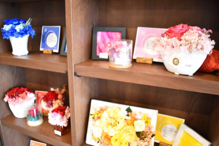 お店には、さまざまな色のプリザーブドフラワーが取り揃えてありました。