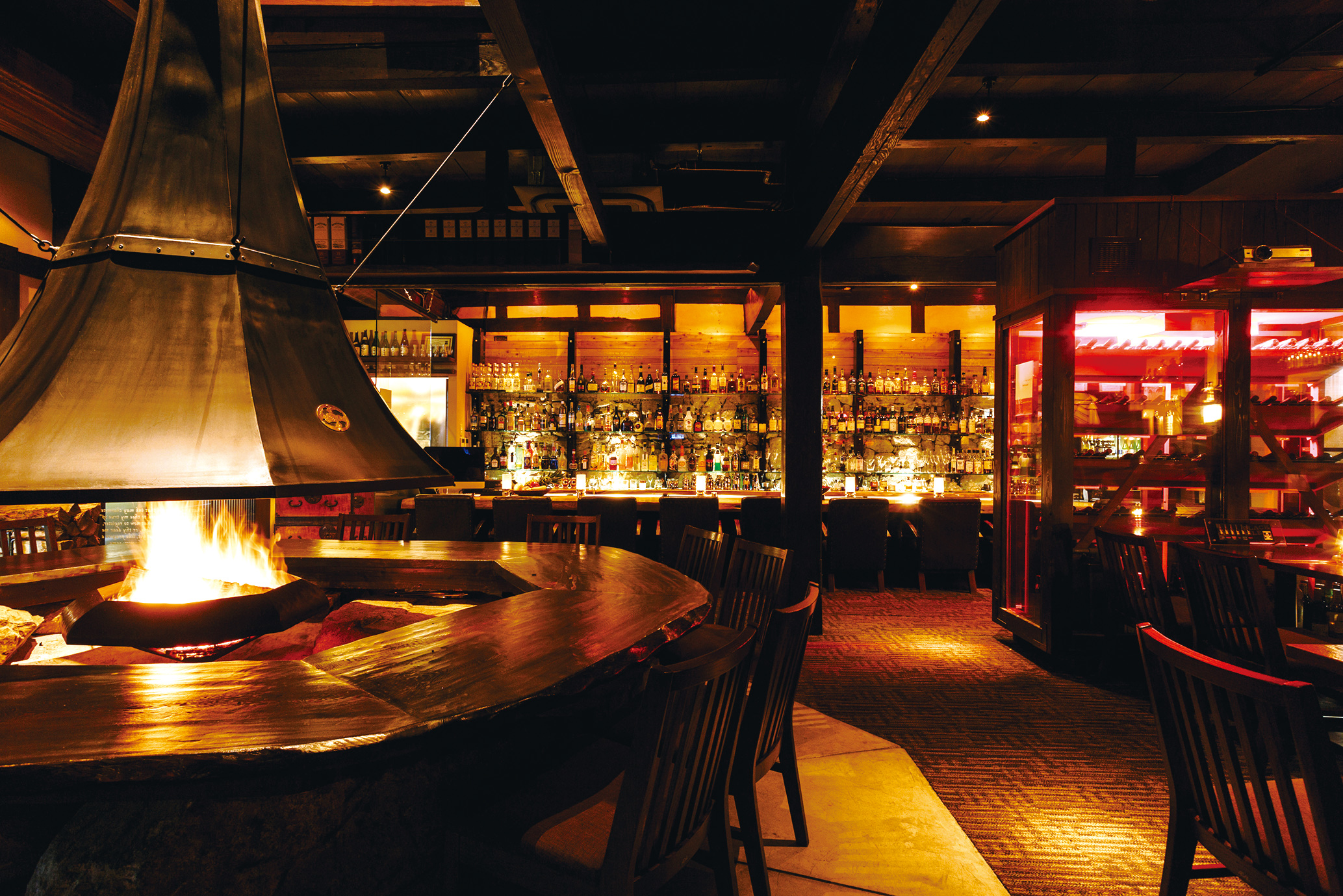 暖炉の炎を囲むゆるやかな空間が広がります。思い思いの時間を過ごしていただけるBARです。