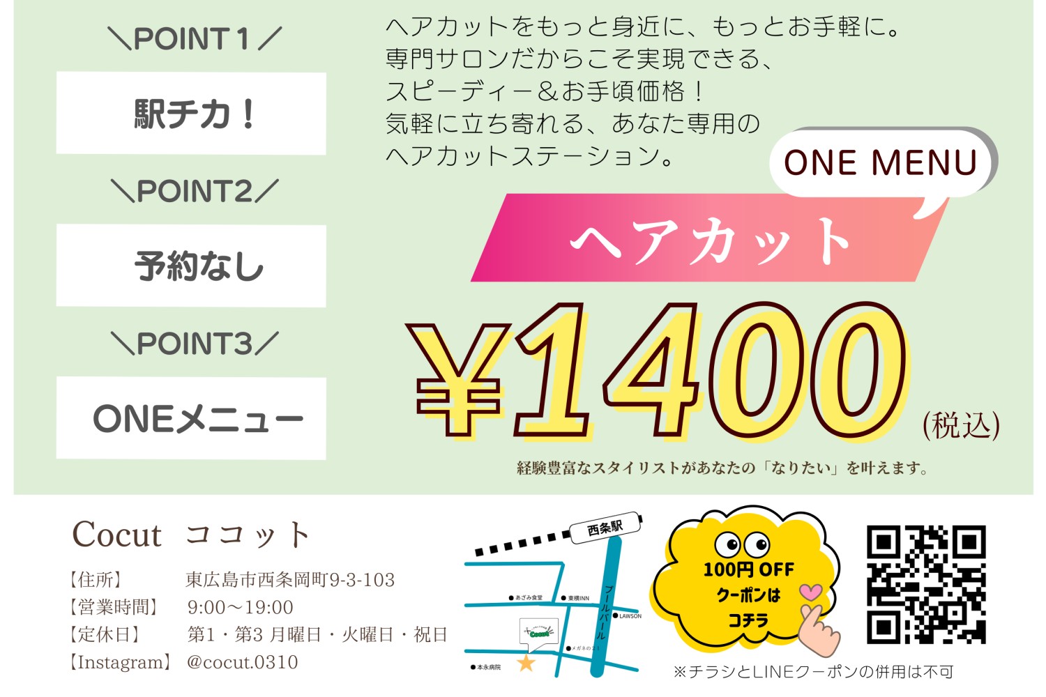 | 店名 | ヘアカットのお店 Cocut(ココット) |