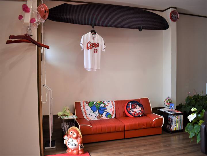 真っ赤なロゴマークに真っ赤な外観、そして店内に飾られたカープグッズに【C style hair】という店舗名…。
