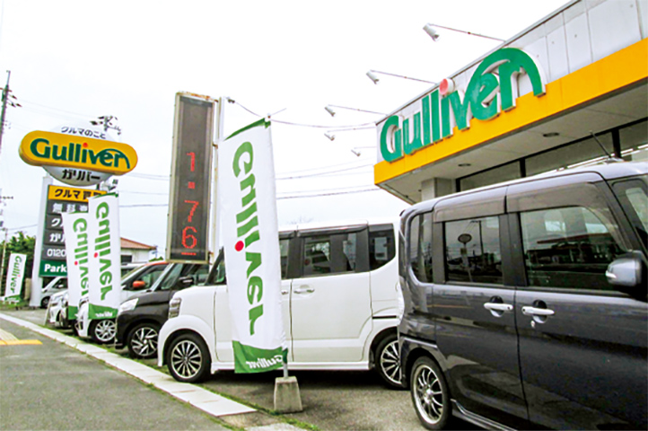 国道375号線沿いを、西条インターに向かって車を走らせるとひときわ目立つガリバーの看板が目に留まる。車の買取から車検などを行う「ガリバー東広島西条IC店」。