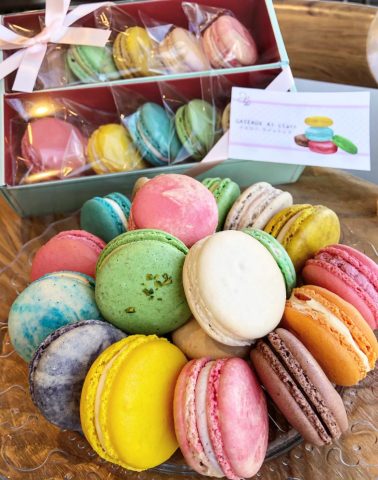 当店のマカロンは素材にこだわり、心を込めてお作りしております。サクサクした食感と甘く優しいクリームで至福のひとときを演出いたします。全15種類のフレーバーと季節限定のフレーバーをご用意しております。