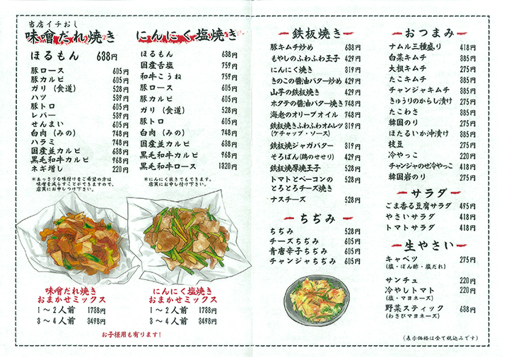◆味噌だれ焼き内容(ほるもん・ハラミ・国産牛並カルピ・黒毛和牛カルピ)