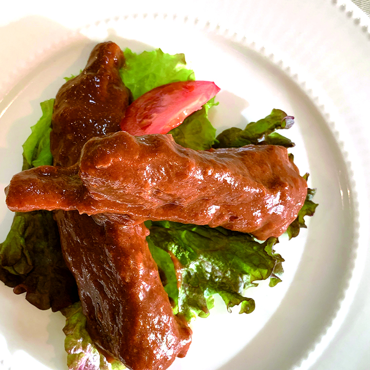 ●粕漬けチキンの赤ワインソース