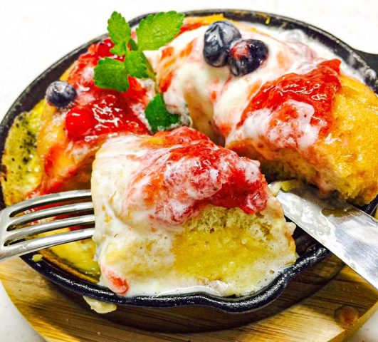 ベーグルをフレンチトーストに仕上げました。ふわふわ&モチモチ食感をお楽しみください。