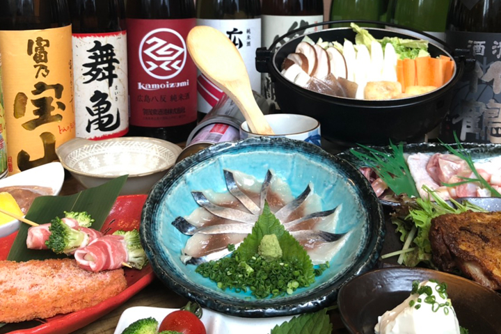 オーナーが赤穂浪士の中の一人の子孫ということから、店内は「忠臣蔵」をコンセプトに、赤穂資料館から許可された絵や、4・7にこだわった遊び心も楽しめるお店。 お料理は地元のお野菜と、瀬戸もみじ豚のコラボで美味しく食していただく「肉巻き串」がメイン。 もちろん西条の美味しい日本酒もそろっています。
