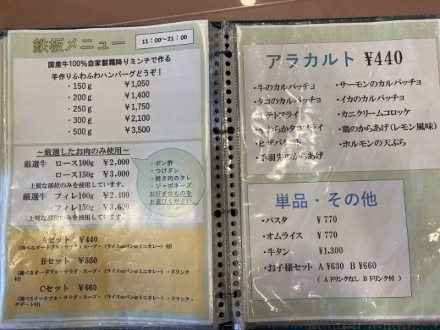 ・ハンバーグランチ A 1,000円 B 1,200円 C 1,400円