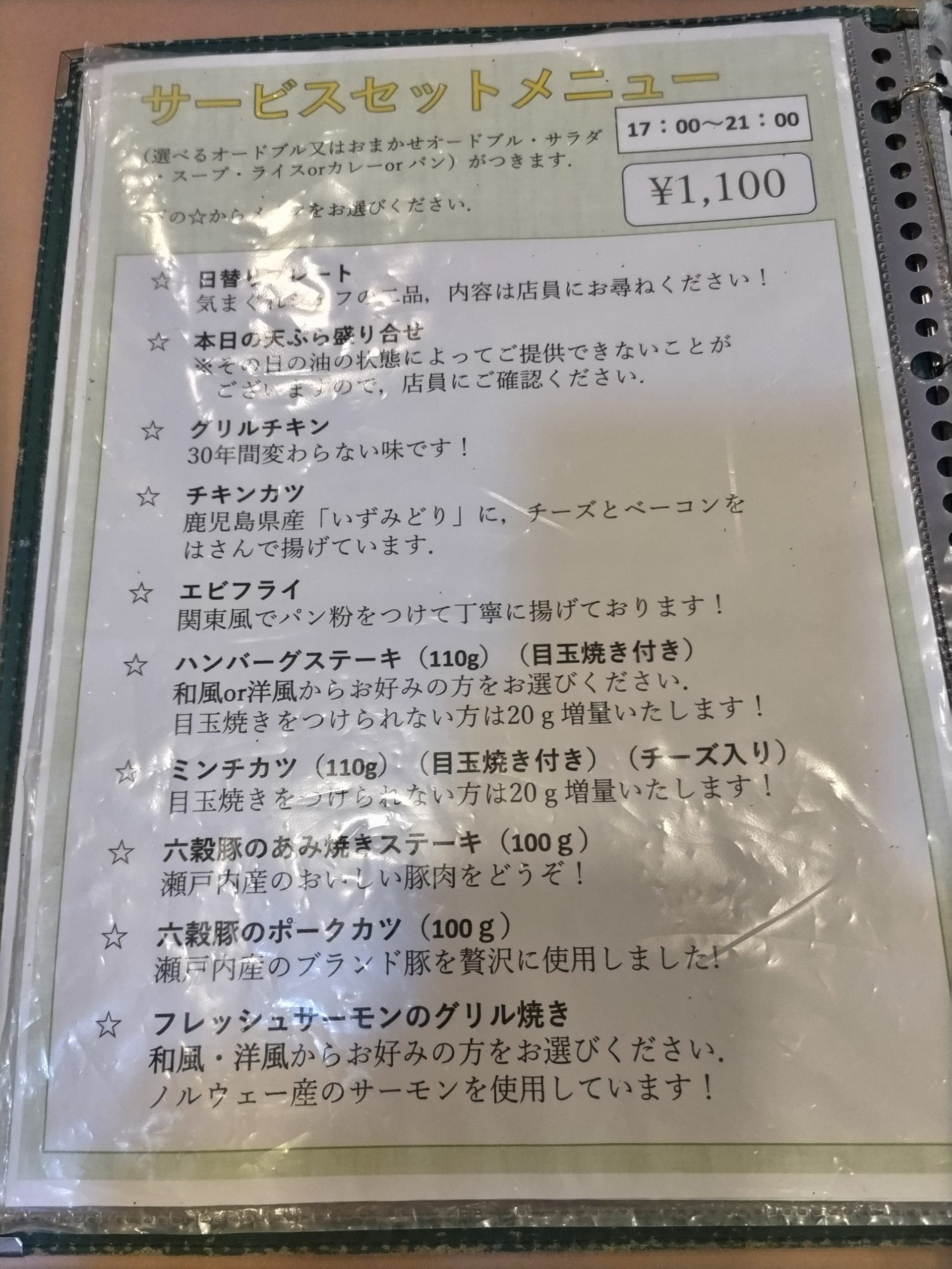 ・グリルチキンランチ A 1,000円 B 1,200円 C 1,400円