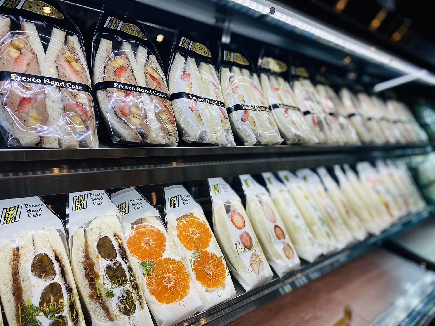 フレスコサンドカフェカフェが誇る人気No1サンドのスペシャルフルーツ。あっさりした甘すぎない生クリームと濃厚でコクのあるやさしい甘さのカスタード。中には色鮮やかなフルーツがたっぷり入った断面が美しいフルーツサンドです。幅広い年齢層の方から愛されます。