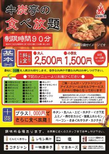 基本コース3,500円で牛タンが食べ放題!