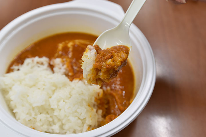 バターチキンカレーと本日のカレー、そして東広島こい地鶏を使った3種類のカレーを食べ比べることができます。
