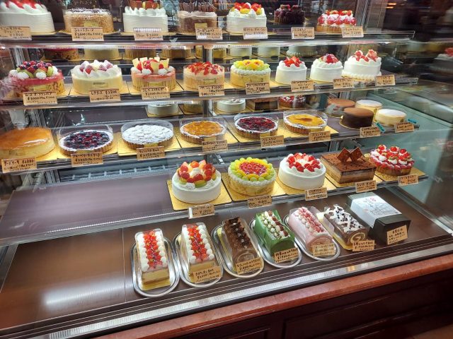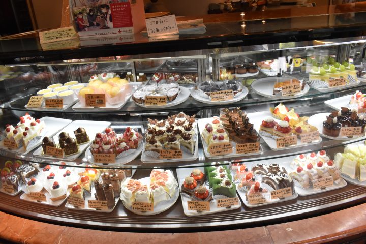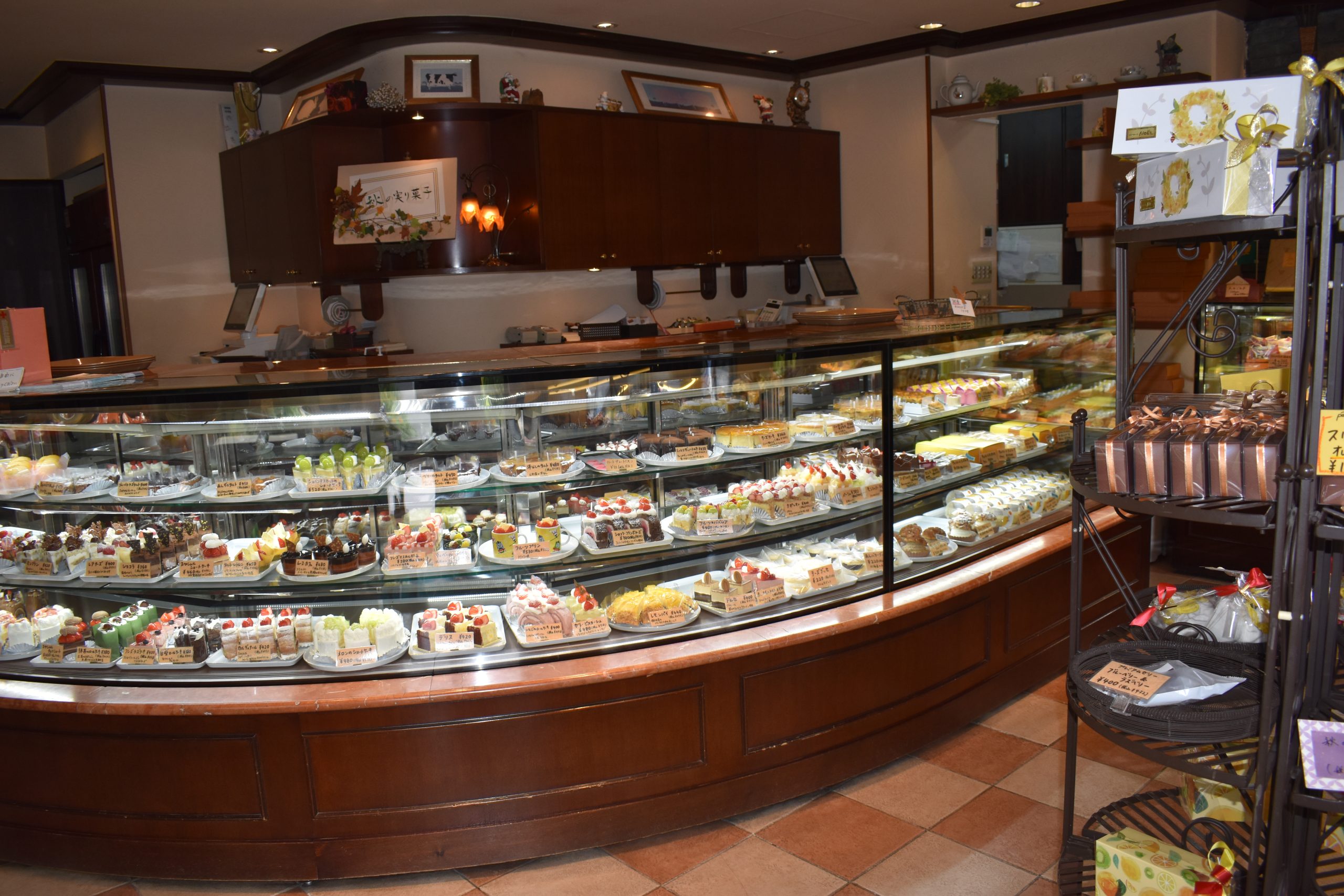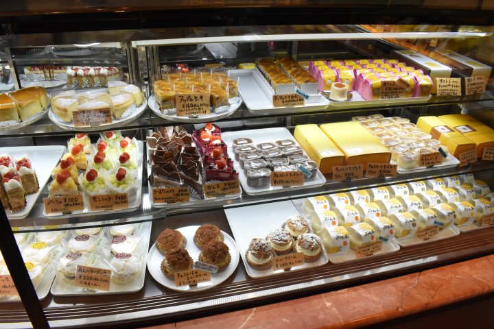 アンティーク調の店内には、100種類以上のケーキや焼き菓子が彩り豊かに並んでいます。