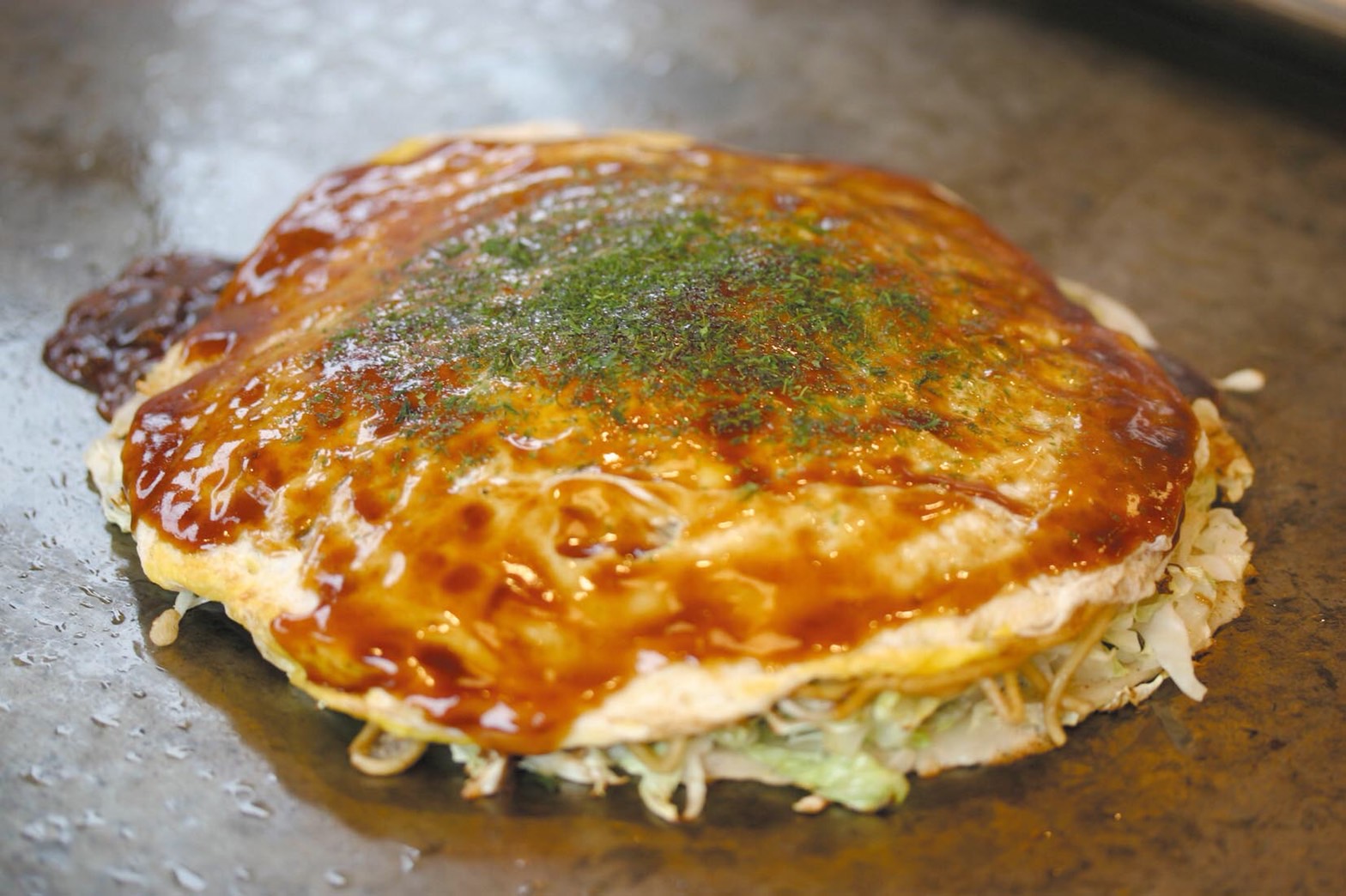 自慢はやはり焼き上がりサックサクの関西風お好み焼きと麺が入った広島風お好み焼です。