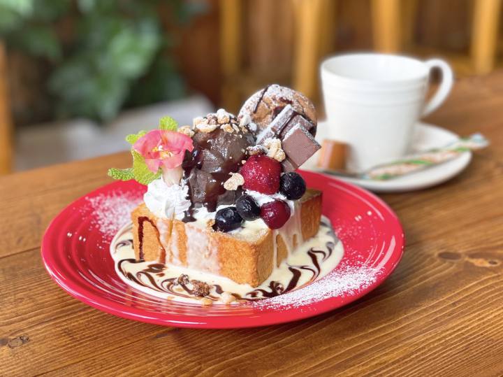 パスタアイリーのおすすめパスタはまろやかな旨味たっぷりな「魚介のトマトクリームソースパスタ」。サクサクしっとりでおいしいデザートの「ハニートースト」とセットでお召し上がりください。