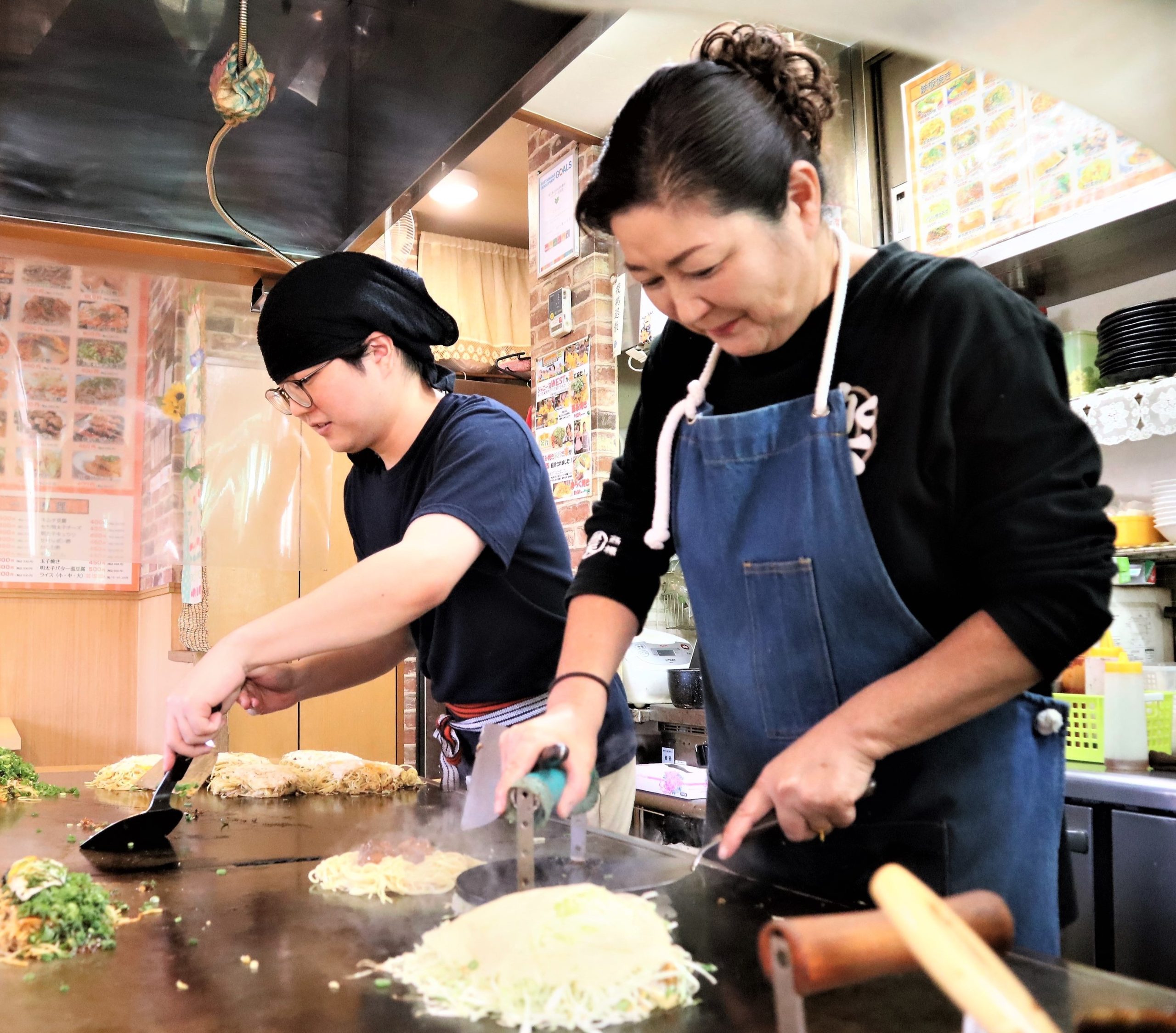 ドヨルの粉モンクエスト|朝日放送の収録でジャニーズWESTの中間くん、藤井くん、神山くんがお好み焼き楽のオリジナルの西条焼きを食べてくださいました。