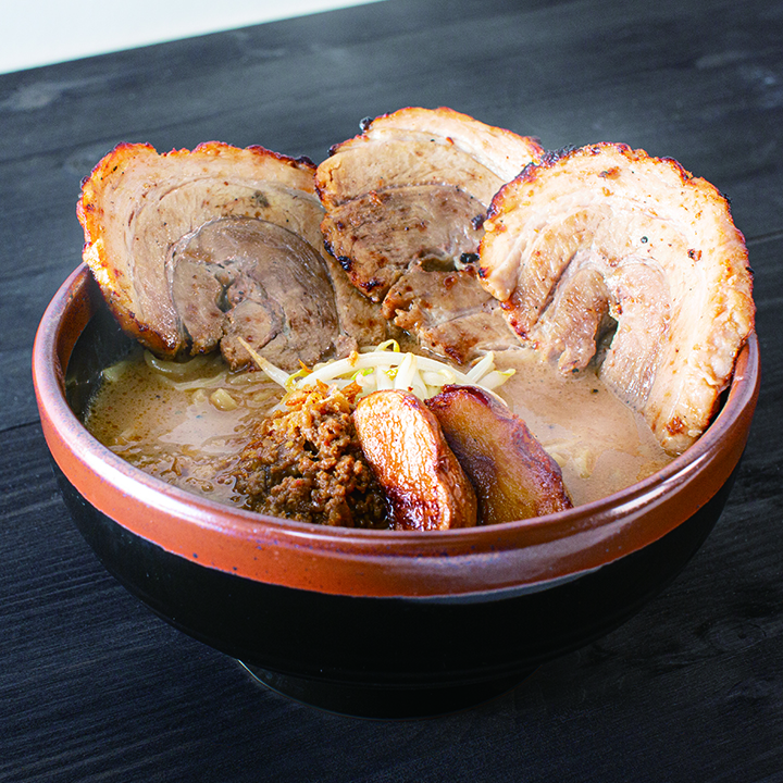 名物の「北海道味噌 味噌漬け炙りチャーシュー麺」は秘蔵の味噌にじっくり漬け込んだ自家製チャーシューを注文が入ってから直火で香ばしく炙ることで、旨みを引き出しているこだわりの一品です。