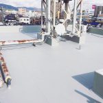 ベランダの床のひび割れを放置すると、中に漏水して防水がフワフワに。この写真は防水をはがした状態だそうです。