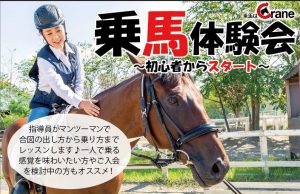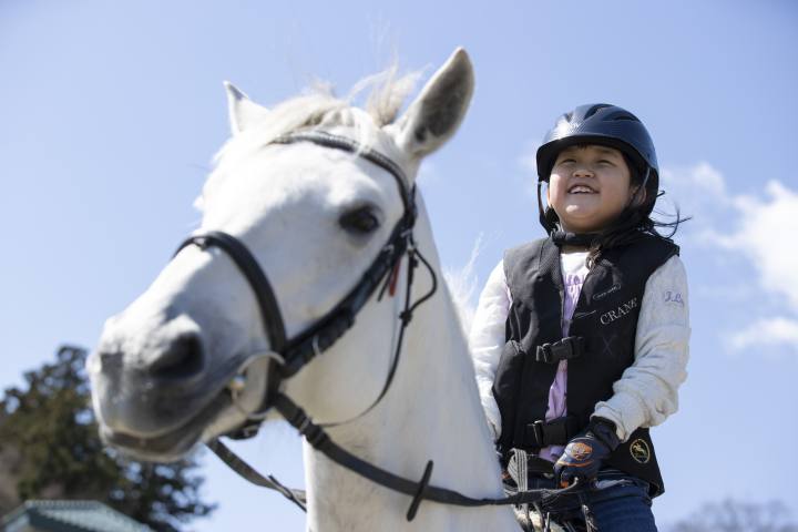 「乗馬クラブクレイン」は全国35カ所に展開。馬を自由に動かせるようになるための技術習得から、健康のために、リフレッシュのためになど、さまざまなニーズに合わせたレッスンを設定。馬の背に揺られ、腹筋や背筋を使ってバランスを取る乗馬は、全身運動になり、体力作りや姿勢矯正にも効果的と言われています。小学1年生から70代まで幅広い年齢層の人が通っています。