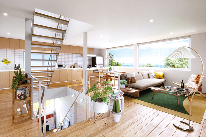 LDKを2階に配置することで、道路からの視線を気にすることなく安心してくつろげる空間になっています。