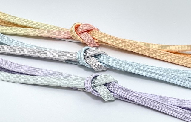 国産シルクを使用した締め心地抜群の帯締め。優しい色目の二色ぼかしでカジュアルからフォーマルまで様々な着物にコーディネートして頂けます。