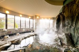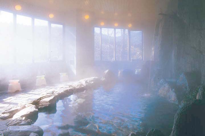 四国から取り寄せた1.5トンの天然緑石と湯煙が醸し出す神秘的な雰囲気をお楽しみください。