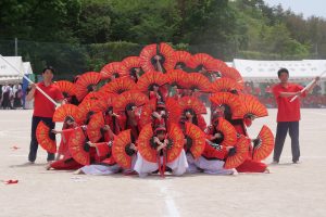 中学から高校までの6学年の縦割りで赤団、白団、青団の3チームに分かれて優勝を目指します。