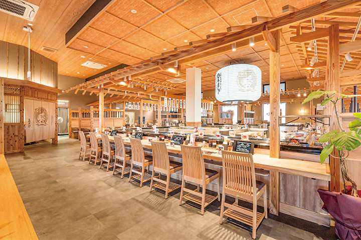 本格的な江戸前寿司が楽しめる 岡山・倉敷に本店のある「すし遊館」。木の温もりを感じられる店内の中心に回転レーン。その内側に用意されている...