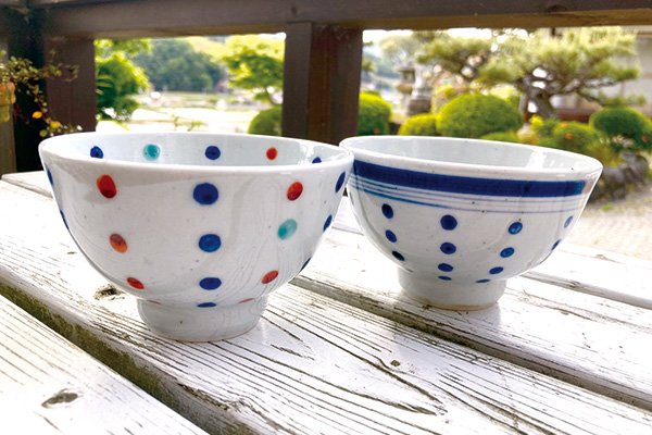 愛媛県の伝統工芸品である砥部焼。こちらの陶器は〝食卓にゆとりを…〟をモットーにしている「陶房遊」から取り寄せたもの。一つ一つ手描きであたたかみのある器たち。蕎麦猪口は湯呑として使うのもおしゃれ。