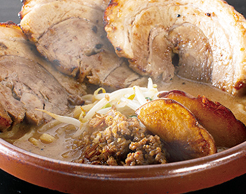 人気ナンバーワン。味噌を丁寧に塗りこんだ味噌漬けチャーシューを直前に炙(あぶ)って提供。濃口の北海道味噌を使ったラーメン。