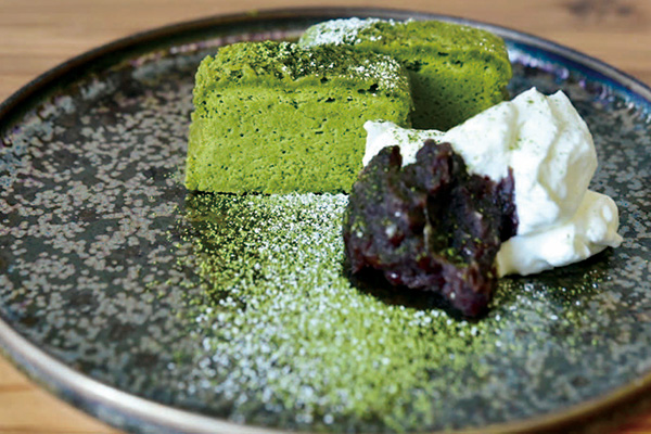 おいしさを追求した本格的なガトーショコラ。宇治抹茶とホワイトチョコを使用した、大人のスイーツ。