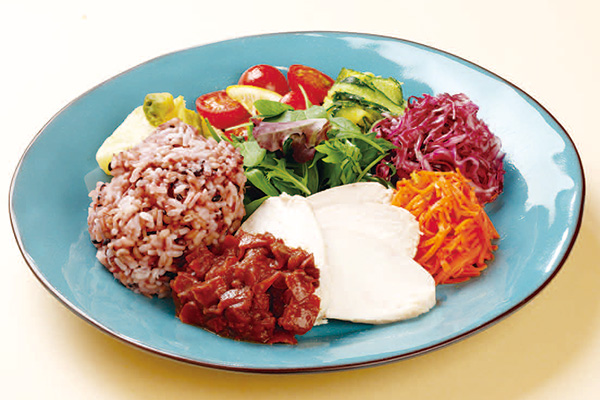 減塩ワンプレート(鶏胸肉のポッシェ 養命酒の黒酢入りトマトソース)1,200円