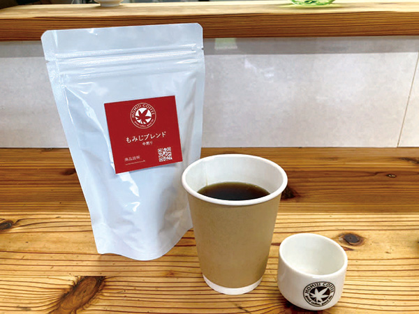 お客さんから飲んだ感想を聞きながら作り上げた「もみじブレンド」。癖がなく、飲みやすいコーヒーを目指して日々研究を続けている。