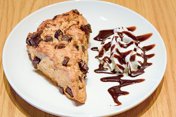 発酵バターを使用した風味豊かな生地にチョコレートを混ぜ合わせ、外はザックリ、中はしっとりと。カスタマイズでボリューム感アップ。