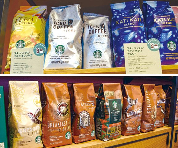 定番のコーヒー豆や季節限定のコーヒー豆など約20種類を用意。コーヒーをローストのレベルで三つに分類。