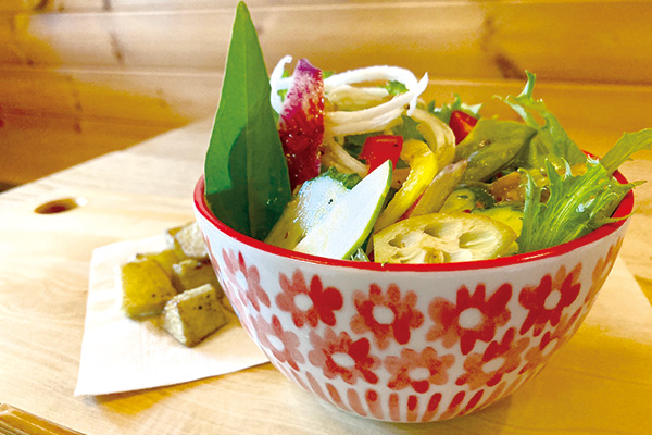 ハンバーガーを頼むなら、セットもおすすめ。地元産のジャガイモを使ったポテトと、地元の旬の野菜がたっぷり入ったサラダ、ドリンクのセットで胃袋も満足。