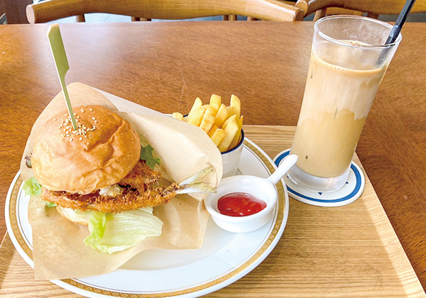 バンズからはみ出るほどの大きな鯵フライは、新鮮な鯵を手仕込みした本格派。オーダーを受けてから調理を始めるので出来たてあつあつを提供します。オーガニックのアーモンドミルクを練り込んだほんのり甘めのバンズは、酒蔵通りにある「cocoron(ココロン)」製。自信作の手作りソースでどうぞ。テイクアウトも可能。