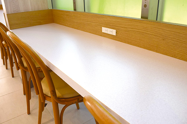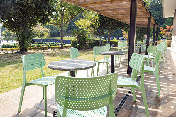 カウンター席にはコンセントがあったり、季節にあったスイーツメニューを提供したり、学生たちに喜んでもらうための工夫がたくさん。天気がいい日はテラス席もいいね。