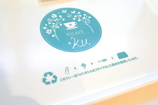 プラスチックごみによる海洋汚染を防ぐ目的で「紙ストロー」を使用、トレーはペットボトルをリサイクルして作ったもの、カフェで販売するオリジナルタンブラーの持参でドリンクを20円引きする「ECO割」の導入など、SDGsへの取り組みも実施中。