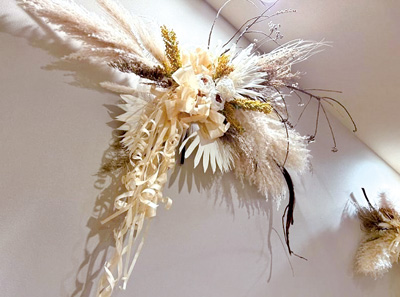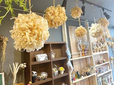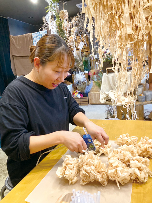 生花店に勤めていたからこそ知った枯れないプリザーブドフラワーの魅力。昨年6月にプリザーブドフラワー、ドライフラワーの販売や教室を行う「Sea garden」をオープンさせた末藤枝里さん。オリジナルのフラワーアート作品も販売しており、最近はカンナくずを使用した作品も人気。
