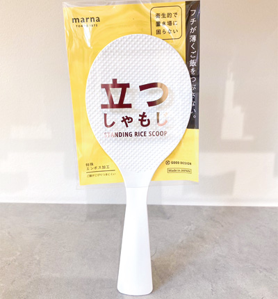 立つから衛生的。握りやすいグリップ+ご飯がこびりつきにくい特殊エンボス加工。