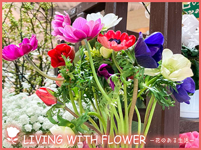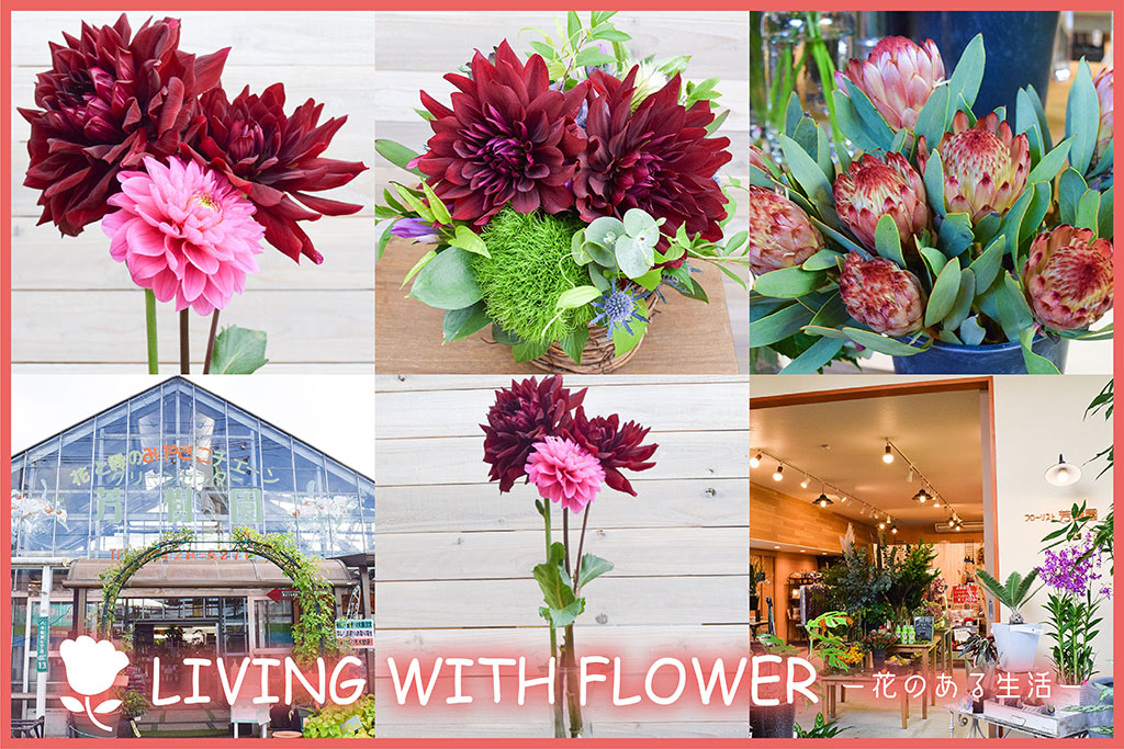 LIVING WITH FLOWER―花のある生活―では、東広島市内の花屋さんに季節の花や栽培方法、生け方などを聞いています。