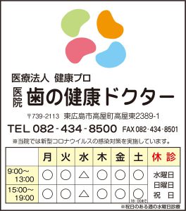 東広島市歯科医師会では休日における急病対策として東広島地区医師会、東広島薬剤師会と協力し、「東広島市休日診療所」を開設しています。